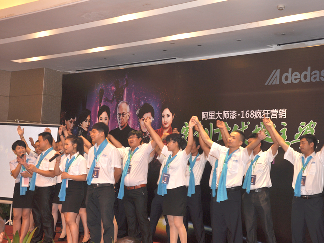 會(huì)議在一*《*越夢(mèng)想》的歡樂(lè)歌曲中拉開(kāi)了帷幕。阿里大師董事長(zhǎng)項(xiàng)興浩在致辭中表示,他在走訪市場(chǎng)的過(guò)程中眾多代理商,發(fā)現(xiàn)很多代理商反映今年的涂料生意不好做。但是如何才能突破困境,實(shí)現(xiàn)銷(xiāo)售神話(huà),也是有路可循。除了調(diào)整好心態(tài),項(xiàng)興浩認(rèn)為把自身鍛煉成為一個(gè)綜合能力強(qiáng)的人,各方面都可以應(yīng)付自如的人才能在市場(chǎng)競(jìng)爭(zhēng)中勝出。在對(duì)各方面有所涉獵后,也要讓自己成為一個(gè)對(duì)行業(yè)專(zhuān)業(yè)、專(zhuān)精的人,這兩者才是在當(dāng)今市場(chǎng)欠景氣情況下的突破大錘。