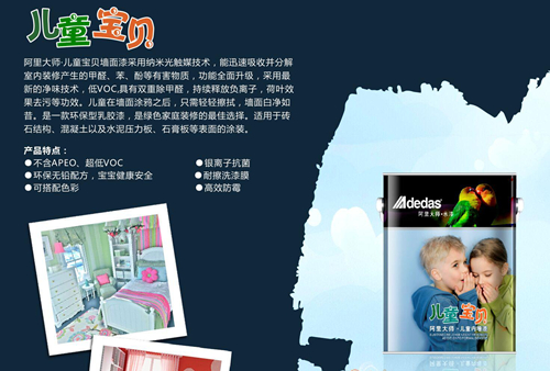 阿里大師·水漆經(jīng)過3年多的研發(fā)和反復(fù)檢測試驗,特于今年的六一兒童節(jié)這天特推出了兒童水漆產(chǎn)品——采用納米光觸媒技術(shù),能迅速吸收并分解室內(nèi)裝修產(chǎn)生的甲醛、苯、酚等有害物質(zhì),功能**升級,采用*新的凈味技術(shù),低VOC具有雙重除甲醛,持續(xù)釋放負(fù)離子,荷葉效果去污等功效。兒童在墻面涂鴉之后,只需輕輕擦拭,墻面白凈如昔,是一款環(huán)保型乳膠漆,是兒童房、家庭裝修的*佳選擇,也是父母給孩子*好的禮物。